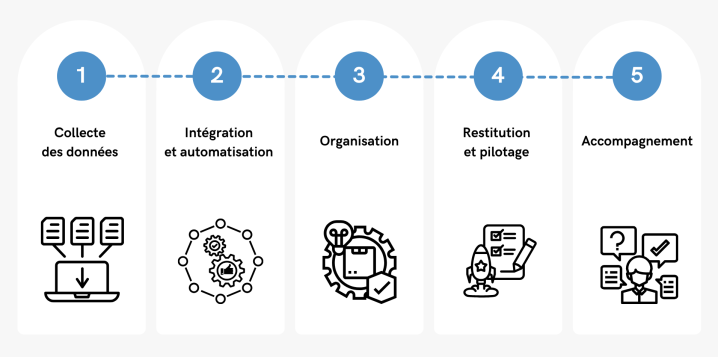 - Mise à disposition d’un reporting sur-mesure ou standardisé (un tableau de bord standard avec quelques indicateurs)